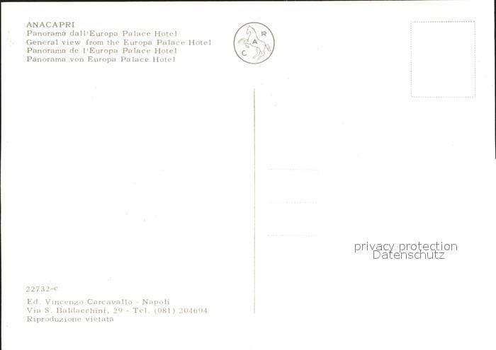 Anacapri Europa Palace Hotel postalisch nicht gelaufen Erhaltung siehe scans