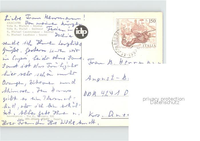 old postcard Anacapri Villa S. Michele innen postalisch gelaufen Erhaltung siehe scans