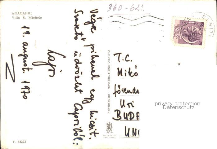 old postcard Anacapri Villa Sankt Michele postalisch gelaufen Erhaltung siehe scans