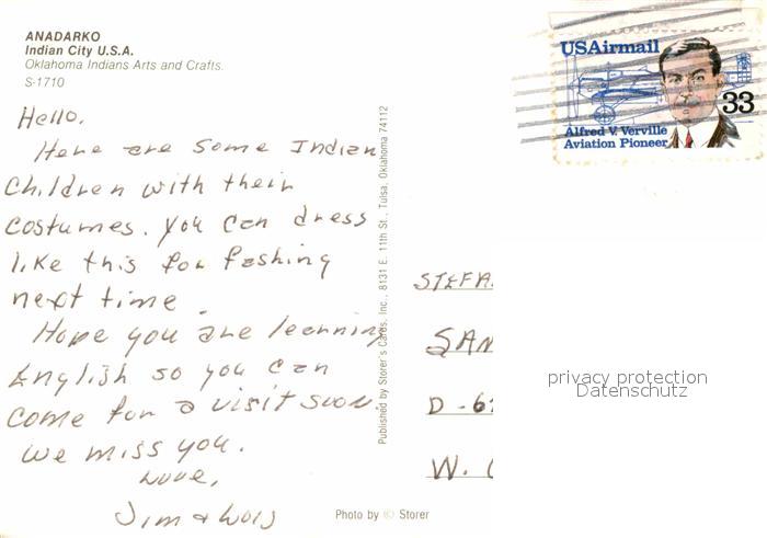 72803472 old postcard Anadarko Children with their costumes Indians Arts and Crafts postalisch gelaufen Erhaltung siehe scans [FriedD77] KatCode: 14140380000000