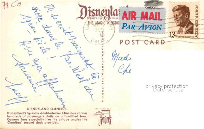 72843781 old postcard Anaheim Disneyland Omnibus postalisch gelaufen Erhaltung siehe scans [NatalD47] KatCode: 14140050000000