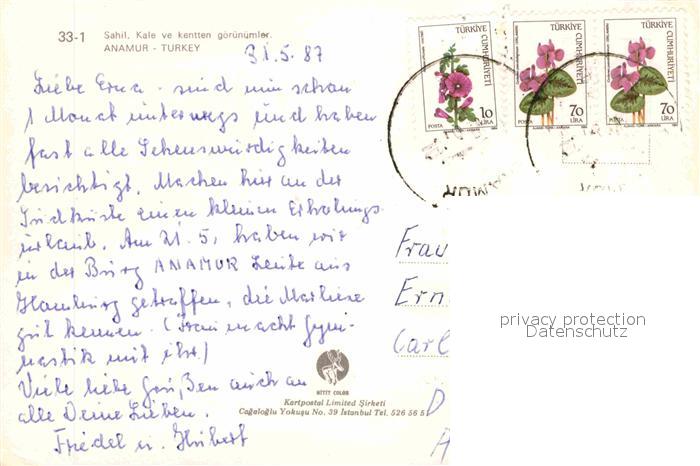 old postcard Anamur Panorama Kueste Festung postalisch gelaufen Erhaltung siehe scans [FriedD77]