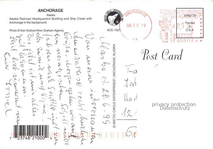 74121864 Anchorage Alaska USA Alaska Railroad Headquarters Building and Ship Creek postalisch gelaufen Erhaltung siehe scans [WerneD78] old postcard Wern Katcode 14140020000000