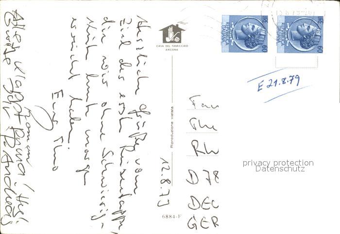 old postcard Ancona Marche Hafenpartie Faehre Tempel postalisch gelaufen Erhaltung siehe scans