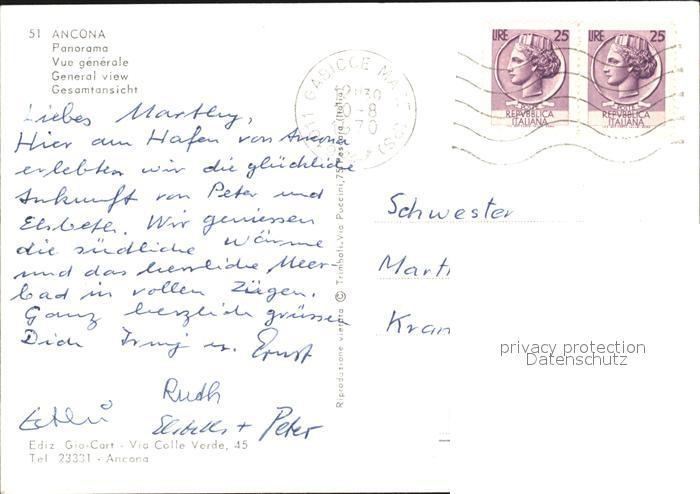 old postcard Ancona Marche Panorama Hafenpartie postalisch gelaufen Erhaltung siehe scans