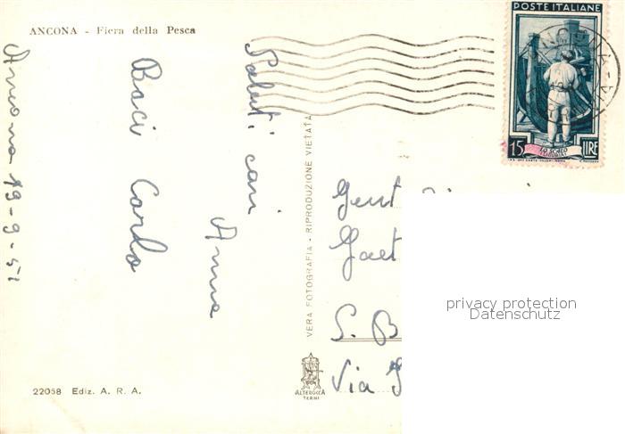 13049580 Ancona Marche Riera della Pesca postalisch gelaufen Erhaltung siehe scans [NatalD47] old postcard Nata Katcode 11240