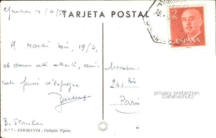 old postcard Andalucia Andalusien Callejon Tipico postalisch gelaufen Erhaltung siehe scans