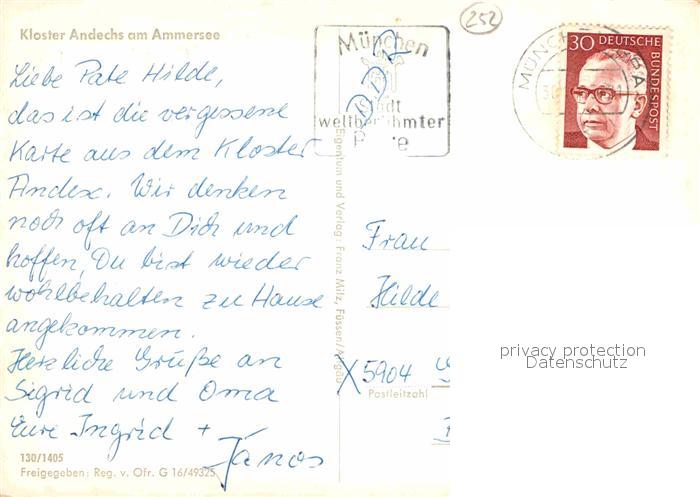 72856972 alte Postkarte Andechs Fliegeraufnahme Kloster postalisch gelaufen Erhaltung siehe scans [AndreD76] KatCode: 11110009188117