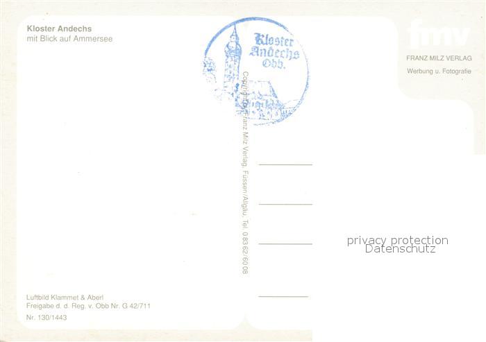 73204217 Andechs Fliegeraufnahme Kloster Ammersee postalisch nicht gelaufen Erhaltung siehe scans [NatalD47] KatCode: 11110009188117
