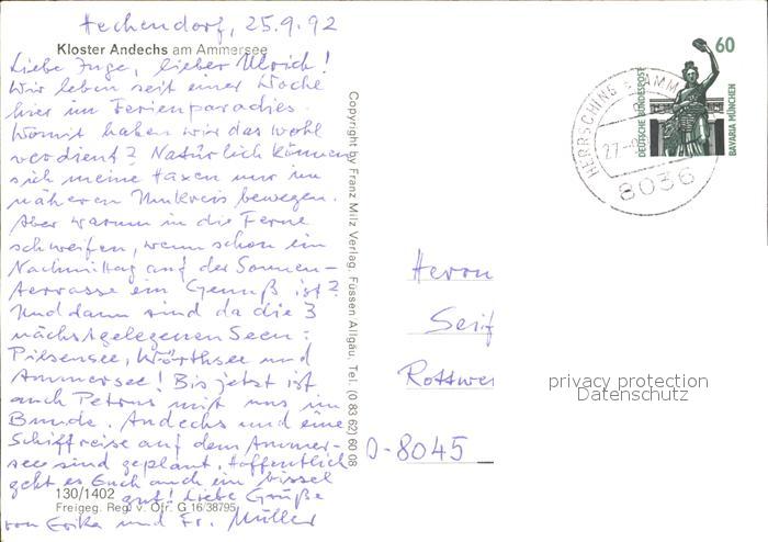 72370782 alte Postkarte Andechs Kloster postalisch gelaufen Erhaltung siehe scans KatCode: 11110009188117