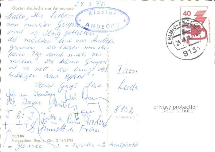 72263156 alte Postkarte Andechs Kloster Alpenkette Fliegeraufnahme postalisch gelaufen Erhaltung siehe scans KatCode: 11110009188117