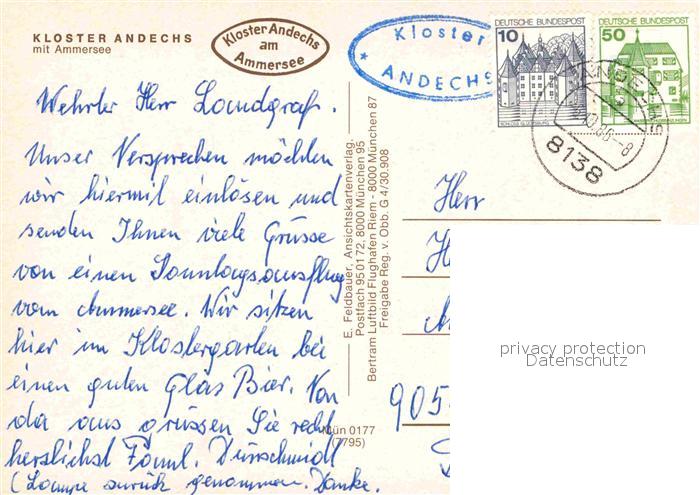 72860047 alte Postkarte Andechs Kloster am Ammersee Fliegeraufnahme postalisch gelaufen Erhaltung siehe scans [FriedD77] KatCode: 11110009188117