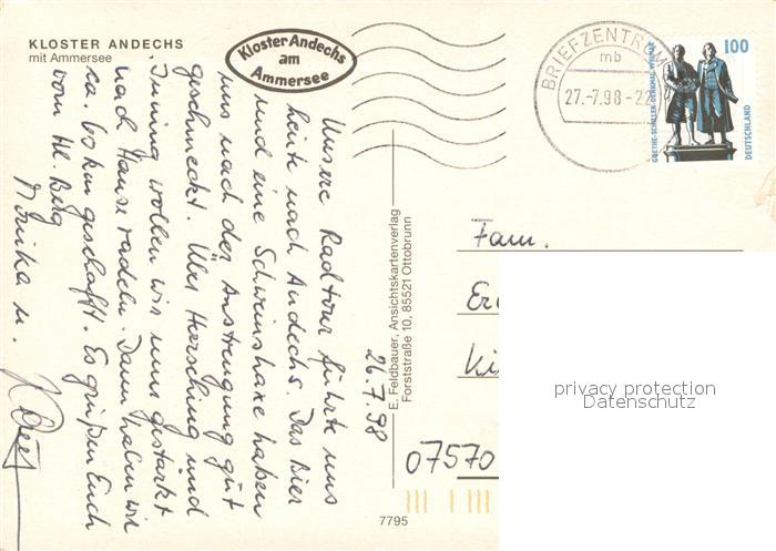 73655817 alte Postkarte Andechs Kloster am Ammersee Fliegeraufnahme postalisch gelaufen Erhaltung siehe scans [FriedD77] KatCode: 11110009188117