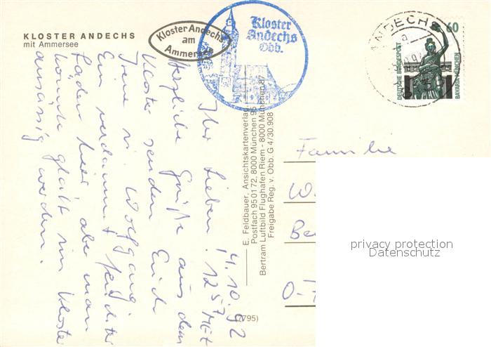 73701704 alte Postkarte Andechs Kloster Andechs am Ammersee Fliegeraufnahme postalisch gelaufen Erhaltung siehe scans [WerneD78] KatCode: 11110009188117