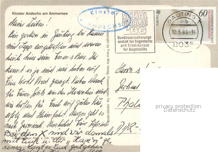 73701619 alte Postkarte Andechs Kloster Andechs am Ammersee Fliegeraufnahme postalisch gelaufen Erhaltung siehe scans [WerneD78] KatCode: 11110009188117