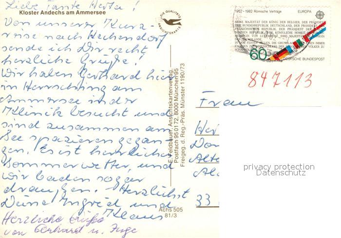 73668482 alte Postkarte Andechs Kloster Andechs am Ammersee Fliegeraufnahme postalisch gelaufen Erhaltung siehe scans [WerneD78] KatCode: 11110009188117