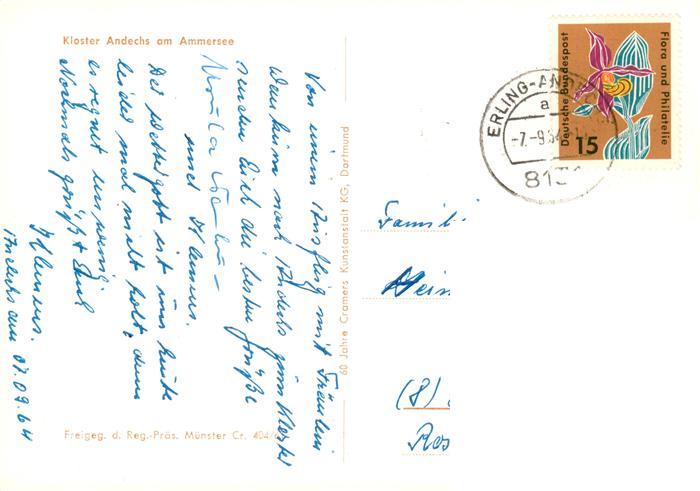 73879213 alte Postkarte Andechs Kloster Andechs am Ammersee Fliegeraufnahme postalisch gelaufen Erhaltung siehe scans [WerneD78] KatCode: 11110009188117