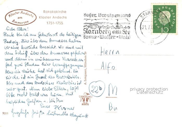 73108878 alte Postkarte Andechs Kloster Andechs Fliegeraufnahme postalisch gelaufen Erhaltung siehe scans [WerneD78] KatCode: 11110009188117