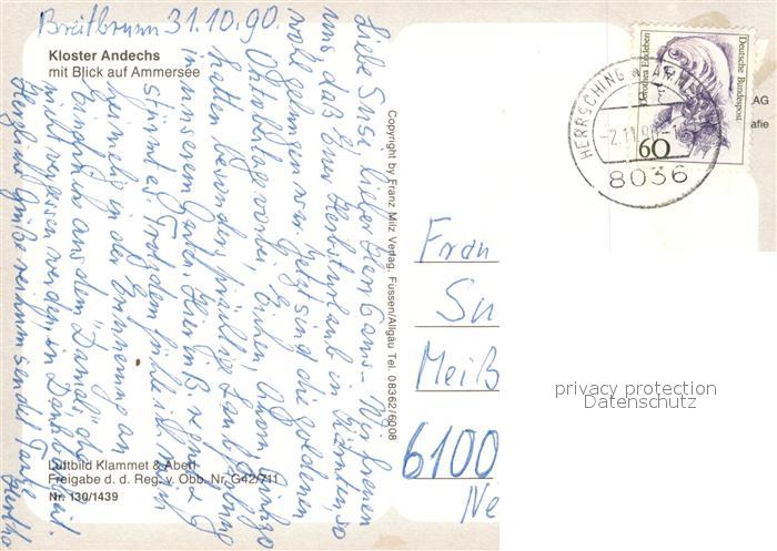 73540035 alte Postkarte Andechs Kloster Andechs mit Ammersee Fliegeraufnahme postalisch gelaufen Erhaltung siehe scans [WerneD78] KatCode: 11110009188117
