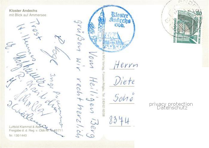 73172576 alte Postkarte Andechs Kloster mit Blick auf Ammersee Fliegeraufnahme postalisch gelaufen Erhaltung siehe scans [FriedD77] KatCode: 11110009188117