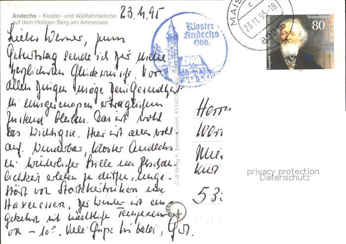 72322518 alte Postkarte Andechs Kloster mit Wallfahrtskirche postalisch gelaufen Erhaltung siehe scans KatCode: 11110009188117