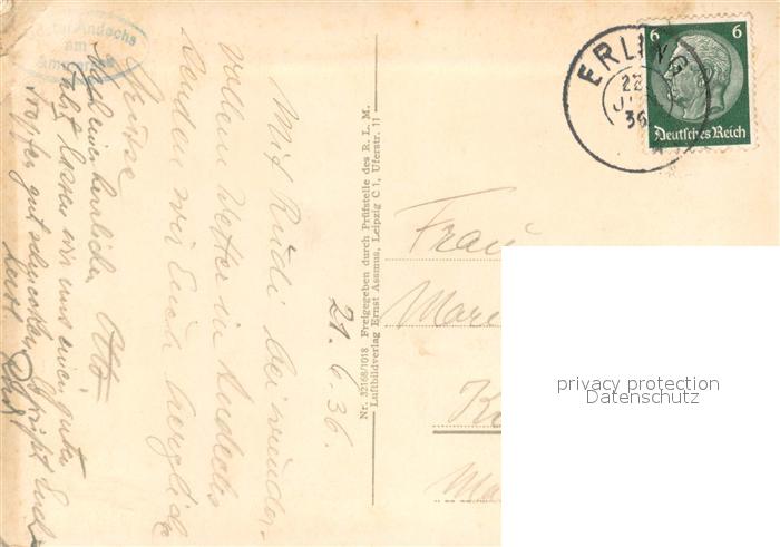 73712212 alte Postkarte Andechs Kloster Original Fliegeraufnahme postalisch gelaufen Erhaltung siehe scans [FriedD77] KatCode: 11110009188117