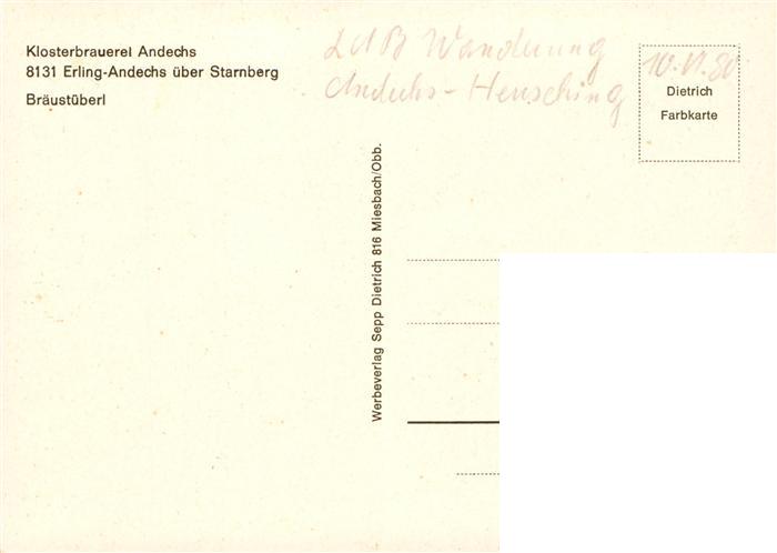 73942040 Andechs Klosterbrauerei Andechs Braeustueberl postalisch nicht gelaufen Erhaltung siehe scans [FriedD77] KatCode: 11110009188117