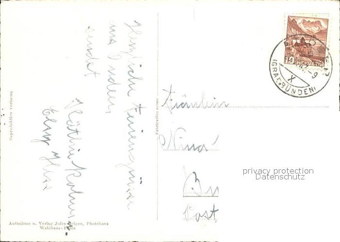 11631058 alte Postkarte Andeer GR Sgrafito Haus postalisch gelaufen Erhaltung siehe scans KatCode: 11470100315020