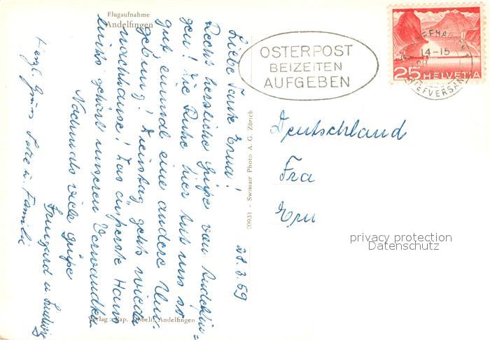 13665176 alte Postkarte Andelfingen ZH Fliegeraufnahme postalisch gelaufen Erhaltung siehe scans [FriedD77] KatCode: 11470260865076