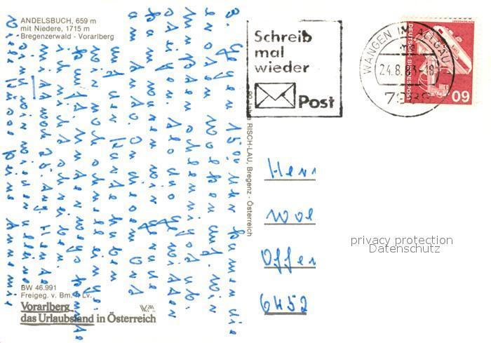 73056839 alte Postkarte Andelsbuch Vorarlberg Fliegeraufnahme mit Bregenzerwald postalisch gelaufen Erhaltung siehe scans [WerneD78] KatCode: 11390341080202