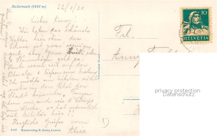 13821288 alte Postkarte Andermatt UR Winterpanorama postalisch gelaufen Erhaltung siehe scans [FriedD77] KatCode: 11470220685180