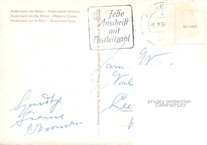 72784828 alte Postkarte Andernach Historischer Kran postalisch gelaufen Erhaltung siehe scans [WerneD78] KatCode: 11110007137003