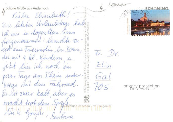 72959944 alte Postkarte Andernach Mariendom Hospitalkirche Stadtmauer Burgruine Rathaus Runder Turm Rheinufer Baeckerjungenbrunnen Alter Krahnen postalisch gelaufen Erhaltung siehe scans [WerneD78] KatCode: 11110007137003
