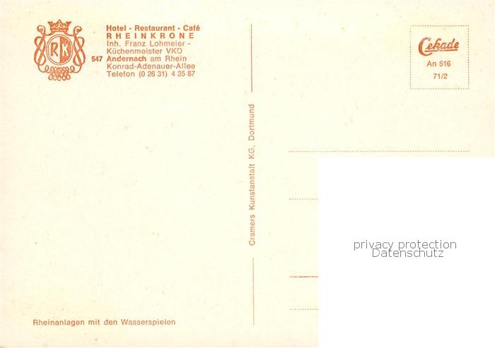 73836392 Andernach Rhein Hotel Restaurant Cafe Rheinkrone Park postalisch nicht gelaufen Erhaltung siehe scans [FriedD77] KatCode: 11110007137003