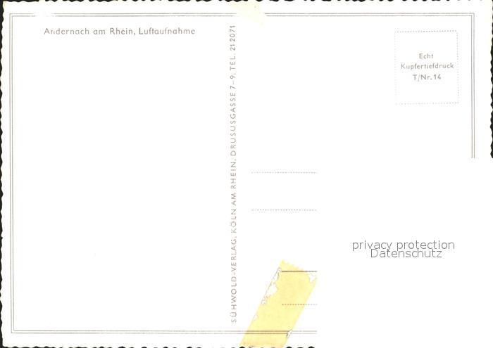 72276711 Andernach Rhein Rheinland-Pfalz Fliegeraufnahme postalisch nicht gelaufen Erhaltung siehe scans KatCode: 11110007137003