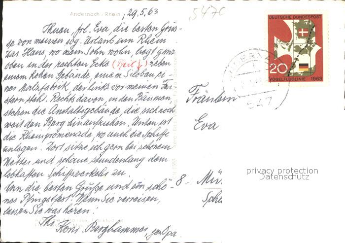 41607231 Andernach Rhein Rheinland-Pfalz Fliegeraufnahme Rheinpanorama postalisch gelaufen Erhaltung siehe scans Alte Ansichtskarte Postkarte alte Postkarte hz_L Katcode 11110007137003