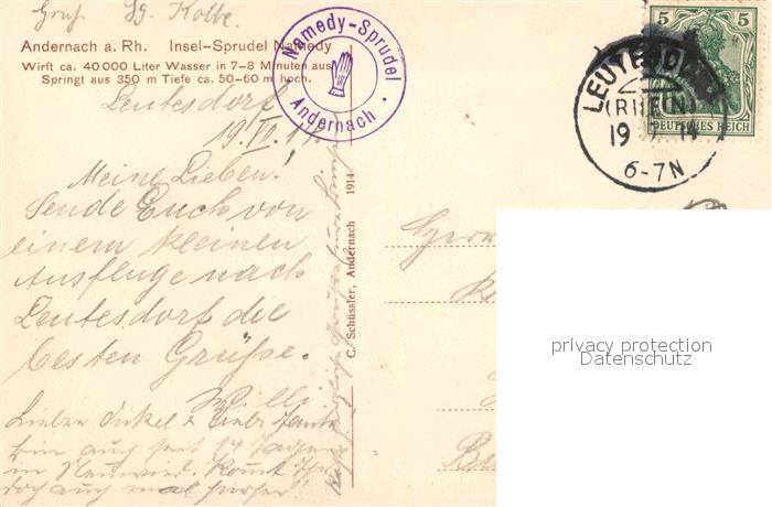 43507077 Andernach Rhein Rheinland-Pfalz Insel Sprudel Namedy postalisch gelaufen Erhaltung siehe scans [LiesaD40] alte Postkarte Lies Katcode 11110007137003