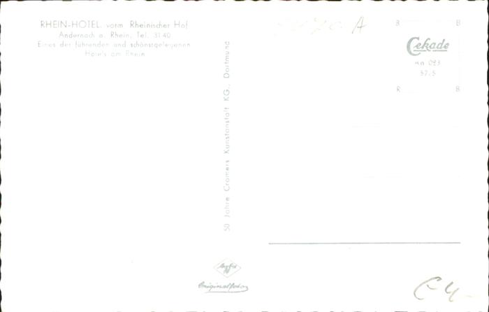 40938467 Andernach Rhein Rheinland-Pfalz Rhein-Hotel postalisch nicht gelaufen Alte Ansichtskarte Postkarte Katcode 11110007137003