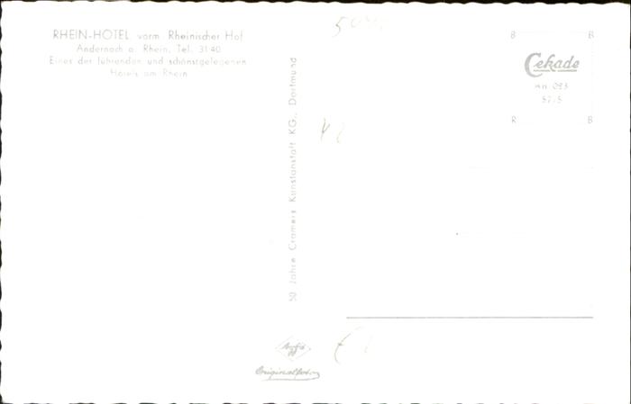 40938460 Andernach Rhein Rheinland-Pfalz Rhein-Hotel postalisch nicht gelaufen Alte Ansichtskarte Postkarte Katcode 11110007137003