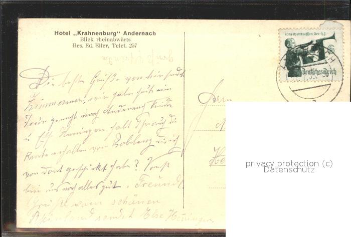 41479694 Andernach Rhein Rheinland-Pfalz vom Berghotel Krahnenburg postalisch gelaufen Erhaltung siehe scans Alte Ansichtskarte Postkarte alte Postkarte hz_W Katcode 11110007137003