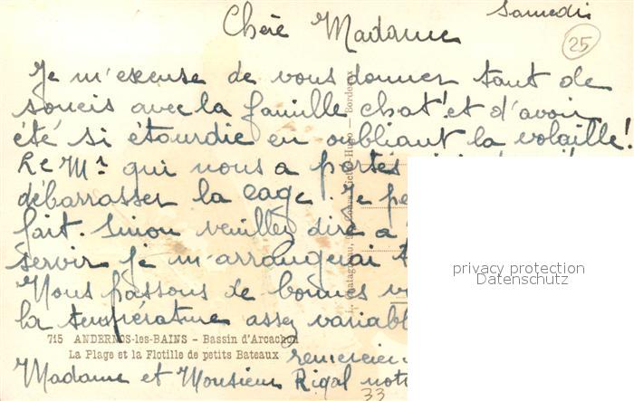 13504426 Andernos-les-Bains Bassin d’Arcachon La Plage et la Flotille de petits Bateaux postalisch nicht gelaufen Erhaltung siehe scans [WerneD78] KatCode: 11170033633005