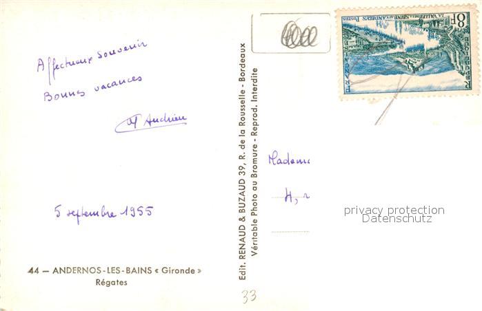 13499787 Andernos-les-Bains Regates Segelboote postalisch nicht gelaufen Erhaltung siehe scans [LiesaD40] KatCode: 11170033633005