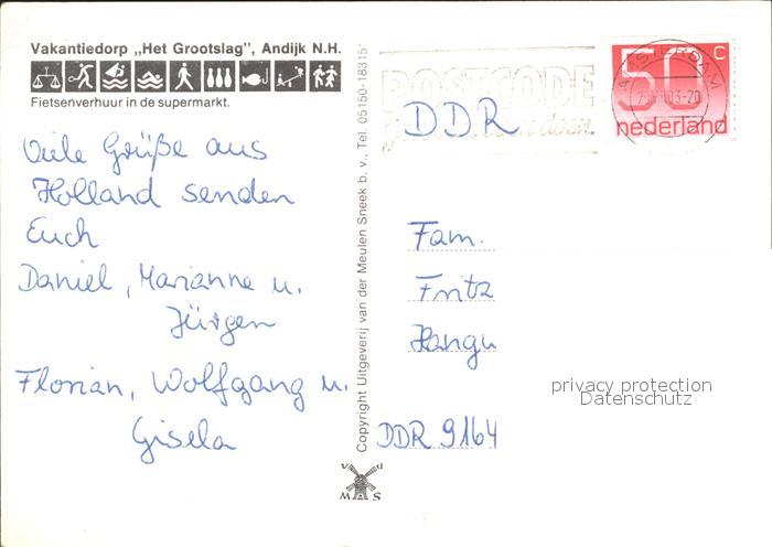 old postcard Andijk Vakantiedorp Het Grootslag postalisch gelaufen Erhaltung siehe scans