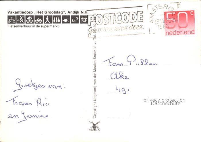 old postcard Andijk Vakantiedorp Het Grootslag Tennisplatz Hallenbad Bungalow postalisch gelaufen Erhaltung siehe scans