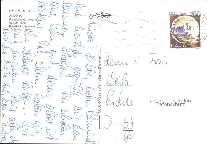 old postcard Andora Panorama da Levante postalisch gelaufen Erhaltung siehe scans
