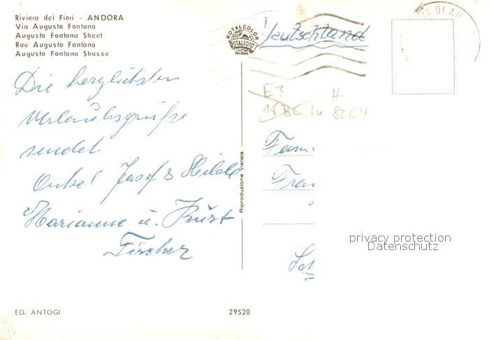 old postcard Andora Via Augusto Fontana Riviera dei Fiori postalisch gelaufen Erhaltung siehe scans [FriedD77]