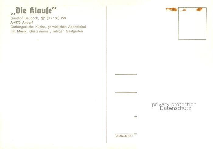 73724978 Andorf Schaerding Die Klause Gasthof Bauboeck postalisch nicht gelaufen Erhaltung siehe scans [WerneD78] KatCode: 11390311041402