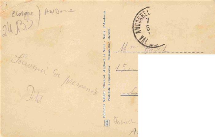 73974047 old postcard Andorra Andorre Capital de les Valls postalisch gelaufen Erhaltung siehe scans [WerneD78] KatCode: 11030