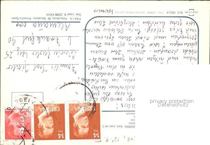 old postcard Andorra Kirche Sant Joan de Caselles postalisch gelaufen Erhaltung siehe scans