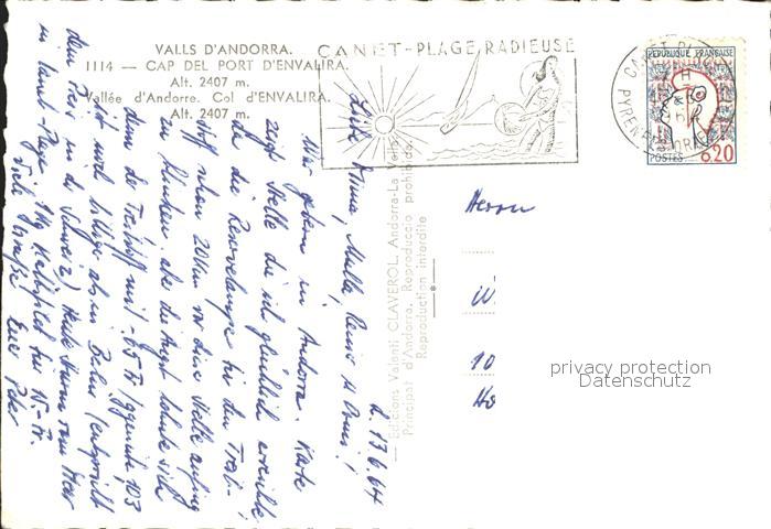 old postcard Andorra La Vella Cap del Port d Envalira Valls d’Andorra Gebirgspass Pyrenaeen postalisch gelaufen Erhaltung siehe scans
